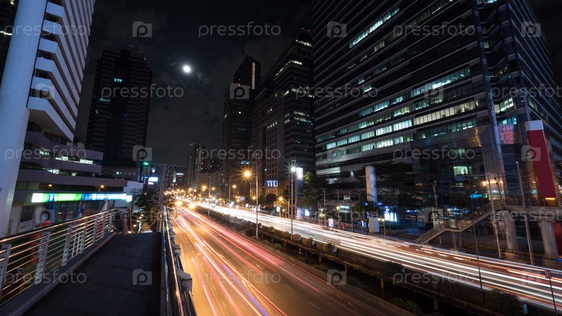 Автомобильное движение в ночном Бангкоке, Таиланд