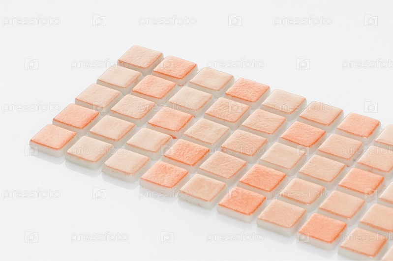 Маленькая оранжевая керамическая плитка на белом фоне, майолика. для каталога