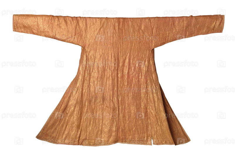 Национальная восточная верхняя одежда на белом фоне. Азиатская, узбекская чапан