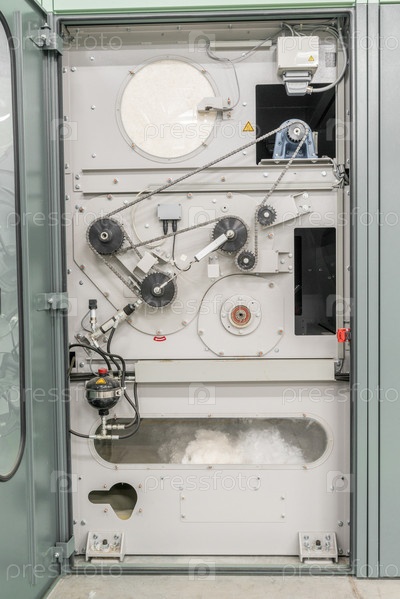 Механизм цепи и шестерни и оборудование в текстильной мастерской. крупным планом