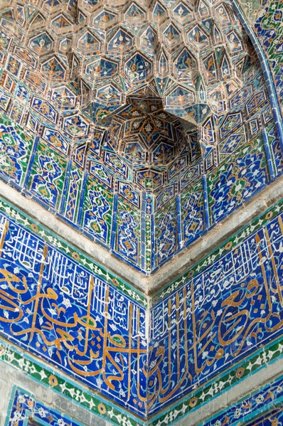 Фрагмент настенной мозаики в традиционном азиатском стиле. детали архитектуры средневековой Средней Азии
