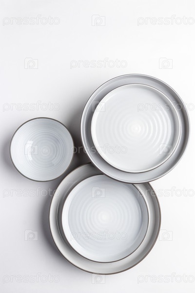 Кухонная и ресторанная утварь на белом фоне. Вид сверху