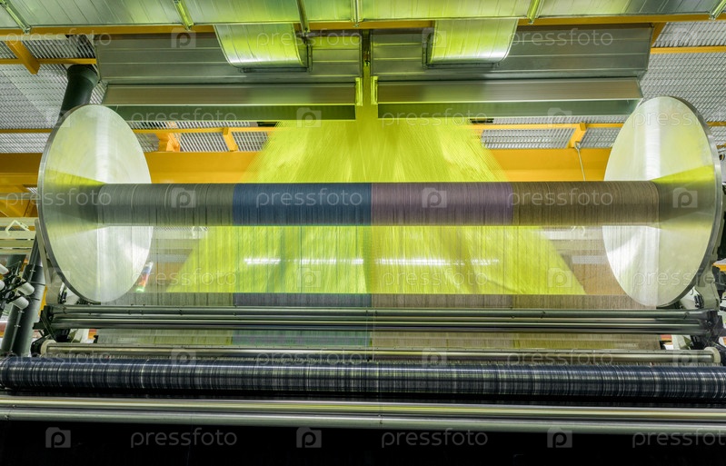 Ткацкий станок на текстильной фабрике, крупным планом. линия по производству промышленных тканей