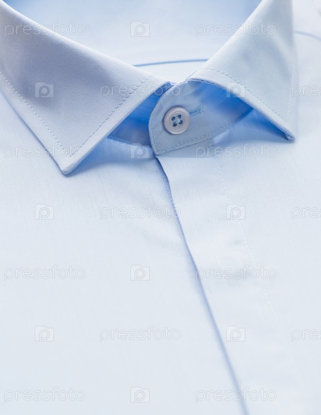 Синяя рубашка с акцентом на воротник и пуговицу, крупный план