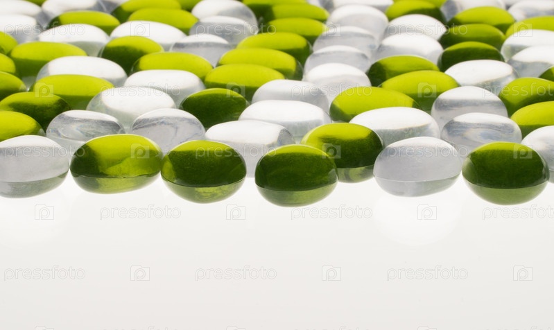 Искусственные круглые камни зеленого и белого цвета. имитация гальки
