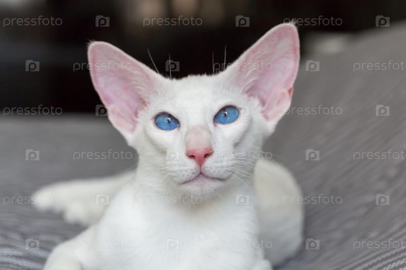 Портрет восточного короткошерстного белого котенка с голубыми глазами