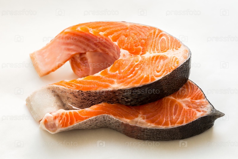 Филе сырой форели на белой тарелке, вид сбоку, концепция здорового питания