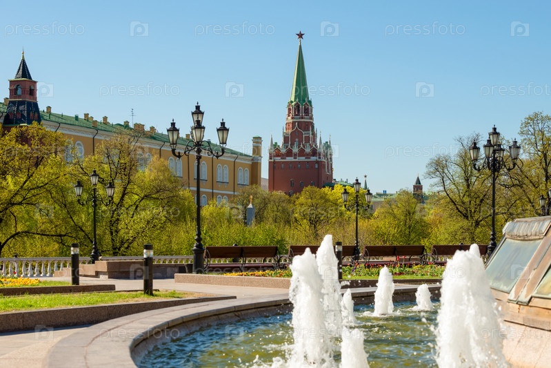 Фонтаны на Манежной площади в весенний день