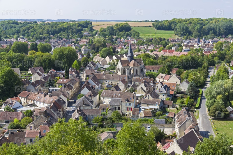 Вид сверху на коммуну Мелло, Франция. Солнечный день в августе