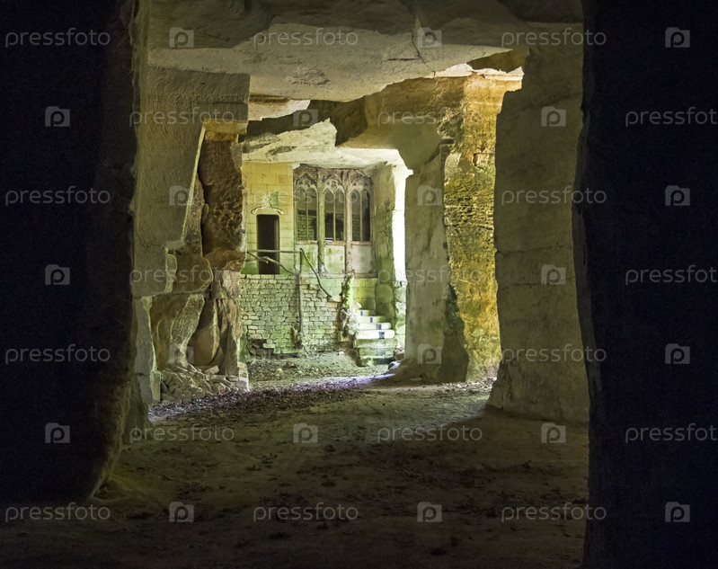 Вход в подземный замок, построенный в каменоломнях под замком Гранд-Мелло, Франция.Этот подземный замок не был закончен и сейчас частично разрушен