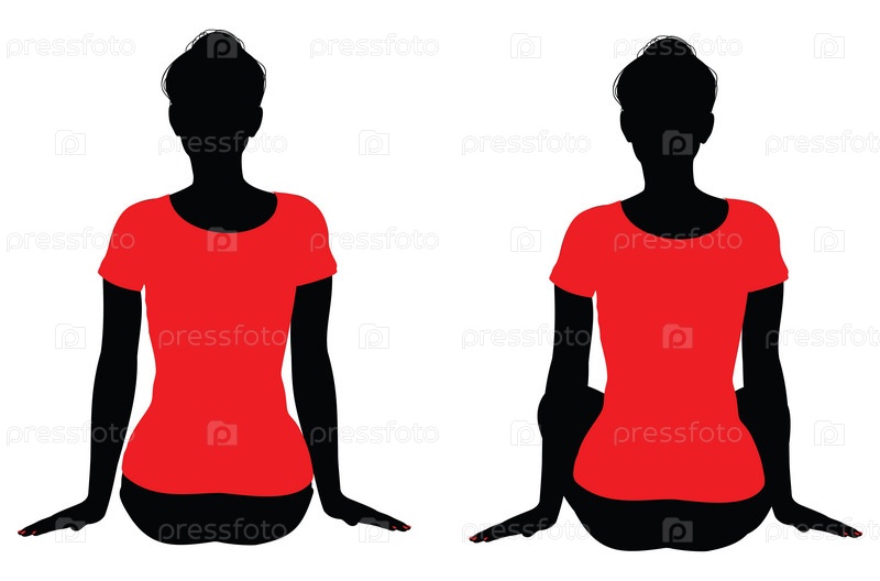 Девушка в красной рубашке сидит позирует силуэт