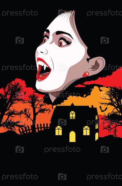 Девушка-вампир над домом