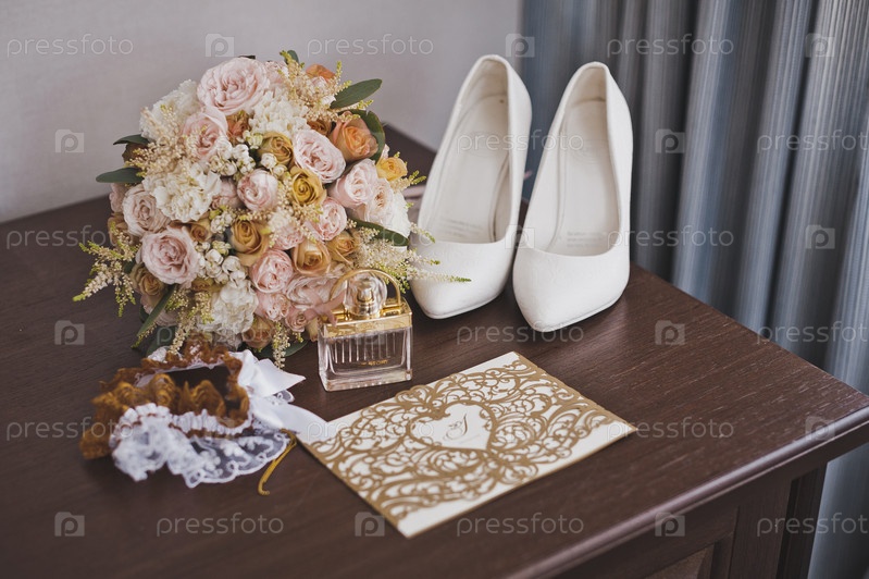 Аксессуары наряда невесты перед свадебной церемонией