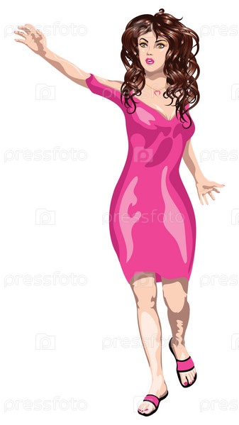 Брюнетка в розовом платье