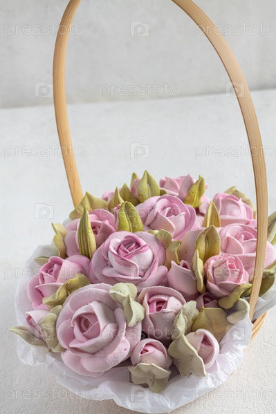 Цветы в пастельных тонах в белой корзине изолированы, флористический свадебный подарок фон, 8 марта, женщины