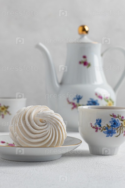 Вкусный зефир на тарелке, стоящей на светлом мраморном фоне. домашние десерты, кондитерская, кондитер, праздник, день рождения, день святого валентина, кондитерские изделия, концепция чаепития