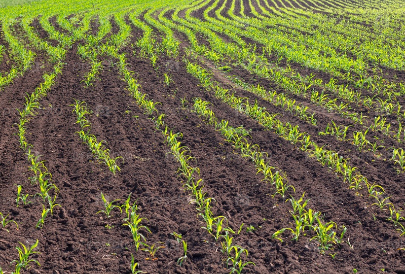 Рассада кукурузы в сельскохозяйственном саду, натуральные продукты
