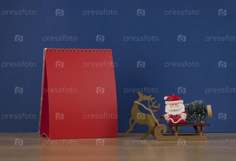 Пустой настольный календарь, шляпа Санты и рождественское украшение. Копировать пространство