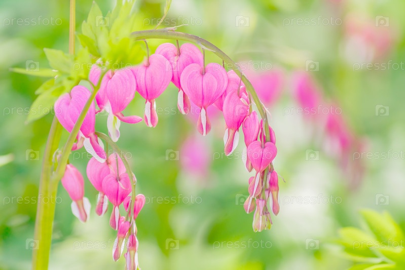 Большой план Dicentra spectabilis в саду.Весенние цветы в форме сердца