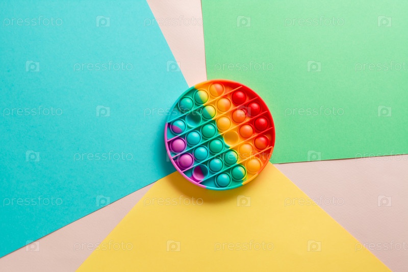 Силиконовая радужная антистрессовая игрушка в виде круга на картоне разных цветов. Модный инструмент для релаксации