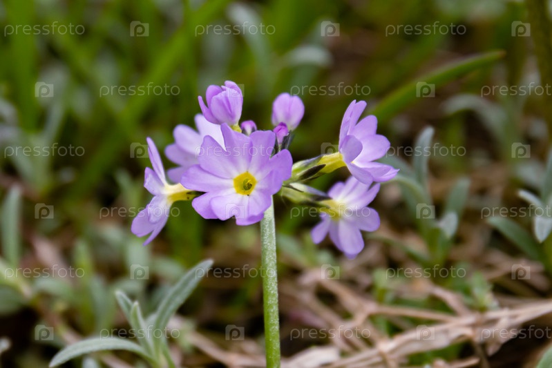 Фиолетовый цветок примулы кавказской лат. Примула Альгида. Крупный план цветет в саду