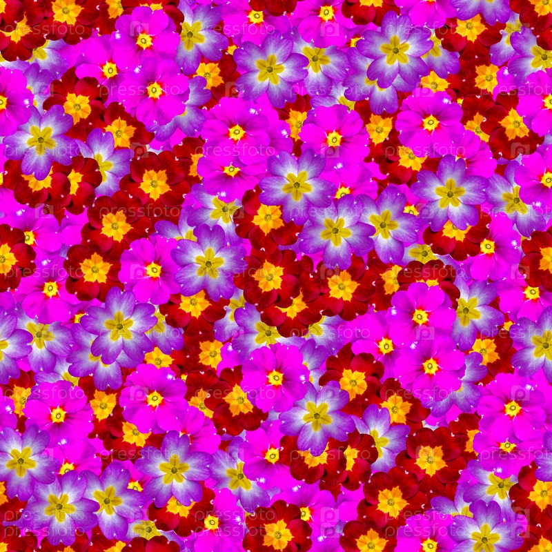 Цветки примулы разноцветные. текстура небольшой бесшовный узор. элементы декоративного оформления