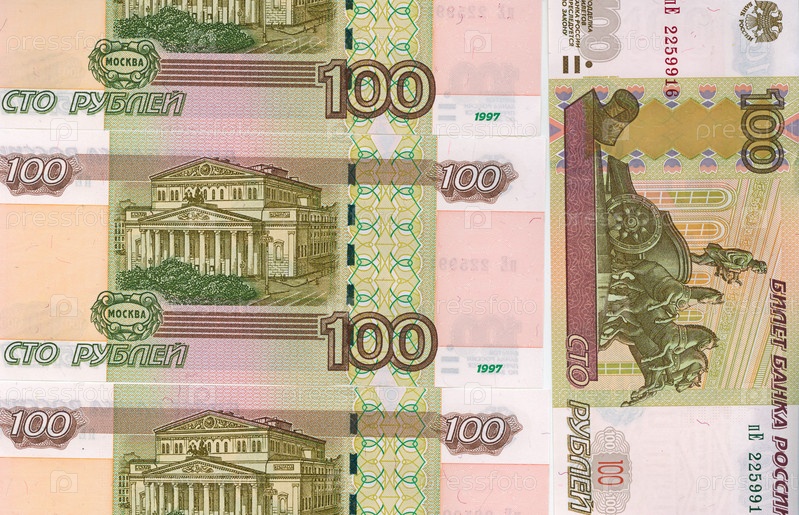 Фон российских банкнот 100 рублей, макрос крупным планом
