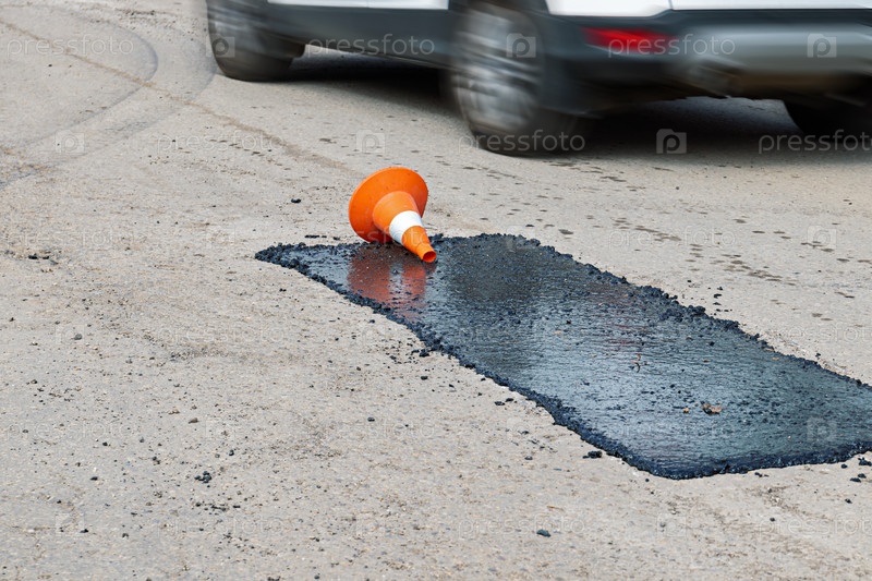 Заделка ям на дороге литым асфальтом. Исправление. Тула, Россия