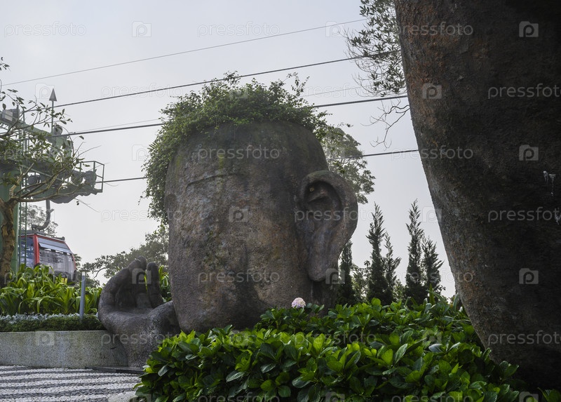 Скульптура каменной головы в Солнечном мире в Дананге, Вьетнам, 12 января 2020 г