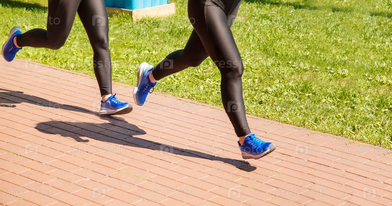 Ноги двух девушек, бегущих на спортивных соревнованиях