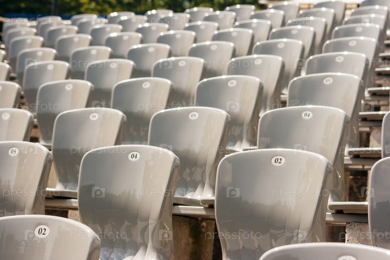 Ряды пластиковых сидений на стадионе