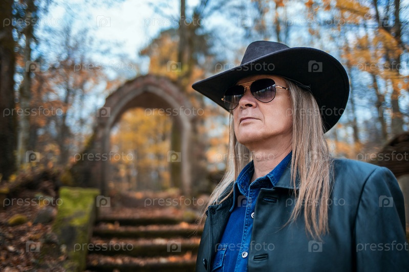 Портрет пожилого мужчины в лесу