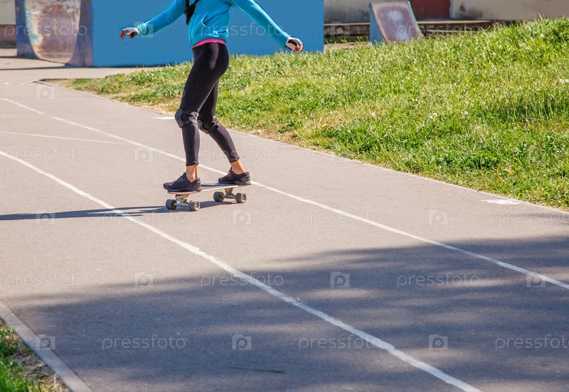 Молодая женщина катается на скейтборде в парке