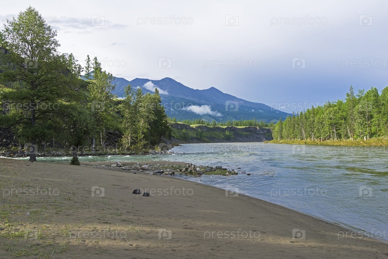 Река Ока Саянская в месте впадения в нее левого притока Жомболок. Восточный Саян, Бурятия, Сибирь, Россия