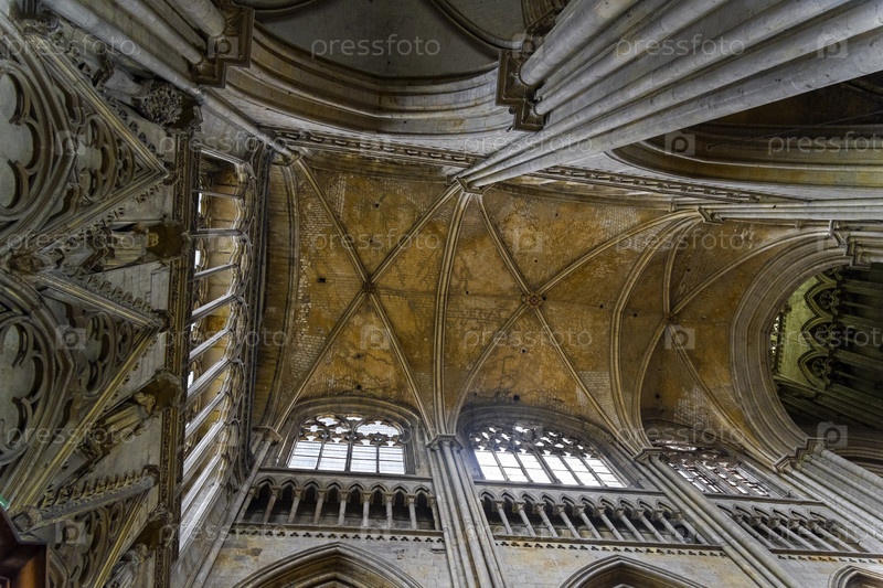 Интерьер католического храма. потолок собора Руанской Богородицы (Cathédrale Notre-Dame de Rouen), Руан, Франция