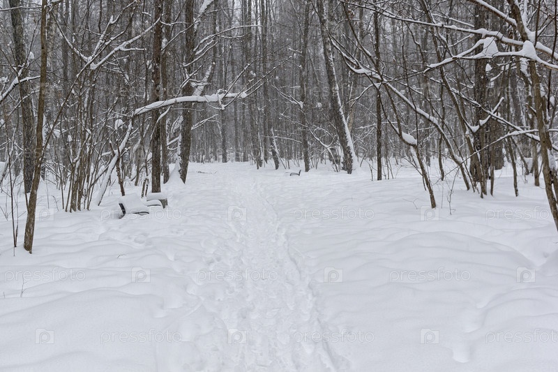 Тропинка в зимнем лесу. Москва, Битцевский лес, январь