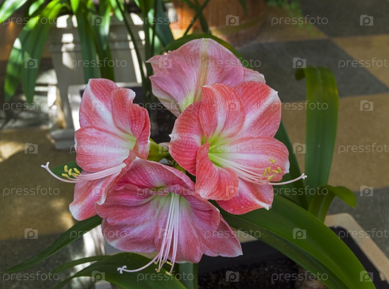 Цветущий красно-белый гиппеастрм (Hippeastrum hybridum)