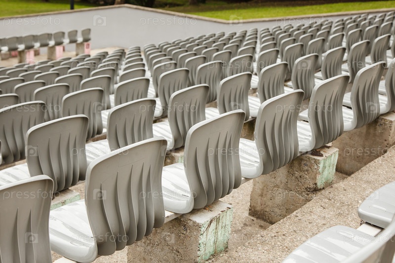 Ряды пластиковых сидений на стадионе
