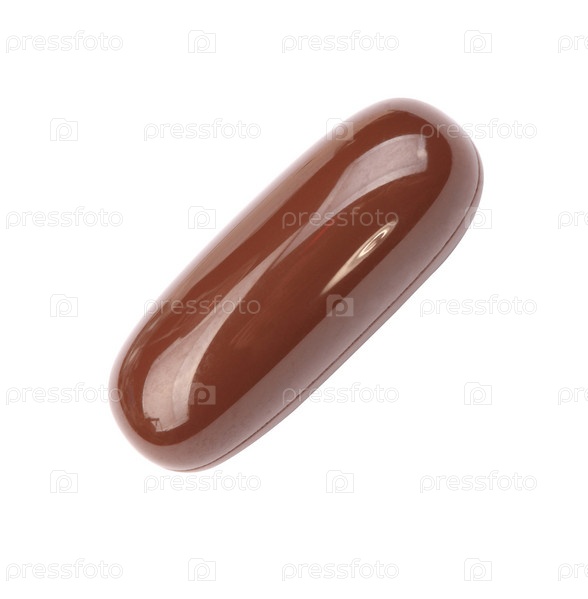 Одна коричневая желатиновая таблетка, выделенная на белом фоне