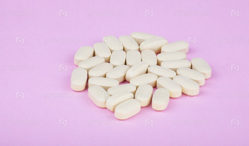 Бежевые таблетки на розовом фоне