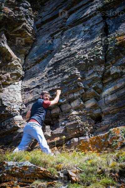 Мужчина стоит на вершине горы, Северная Осетия, село Камунта