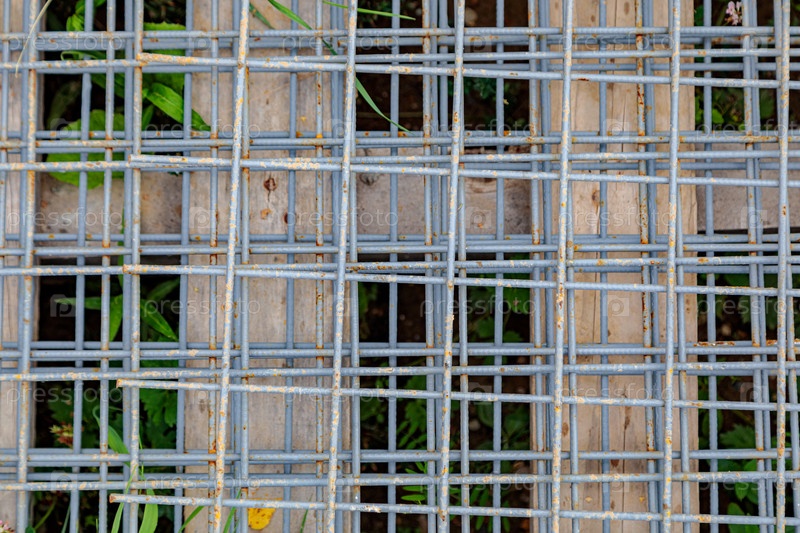 Металлическая сетка, используемая в строительстве. Металлическая сетка лежит на деревянном поддоне на строительной площадке