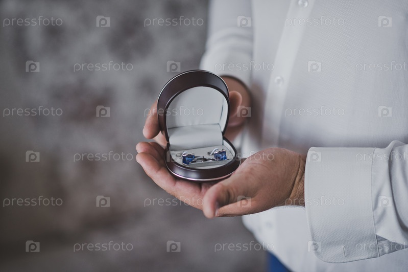 Шкатулка с обручальными кольцами в мужских руках