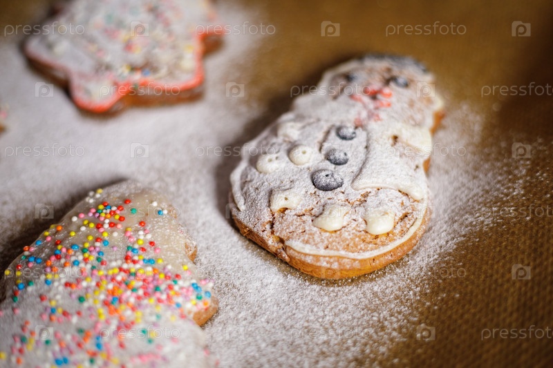 Рождественское печенье, посыпанное сахарной пудрой, на противне