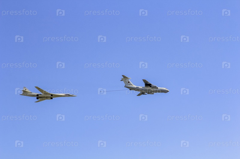 Российские самолеты летят на военный парад в День Победы. Дозаправка в воздухе