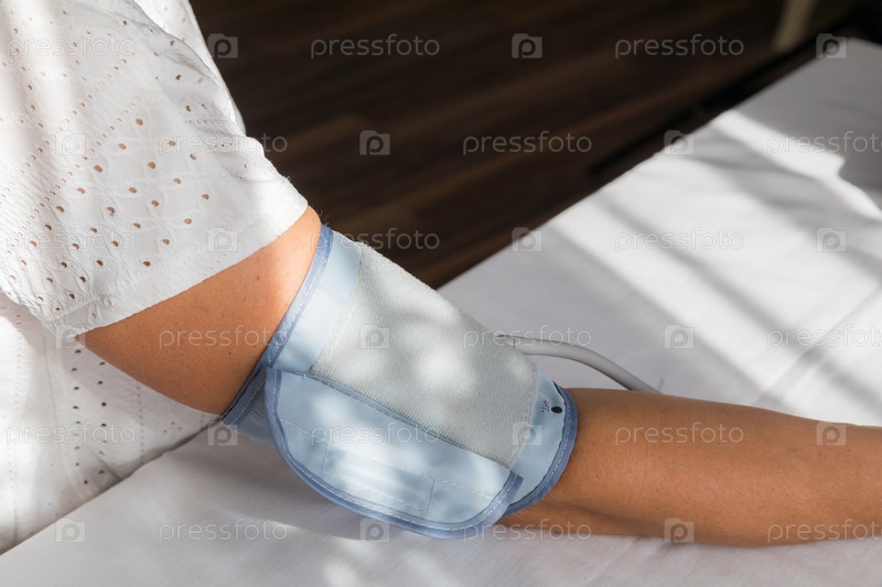 Девушка-врач измеряет артериальное давление взрослой женщины