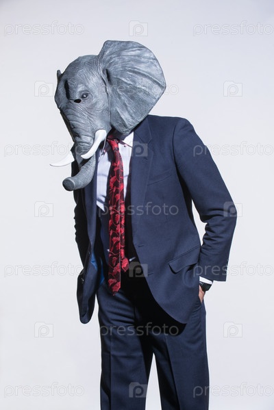 Мужчина в маске слона на светлом фоне