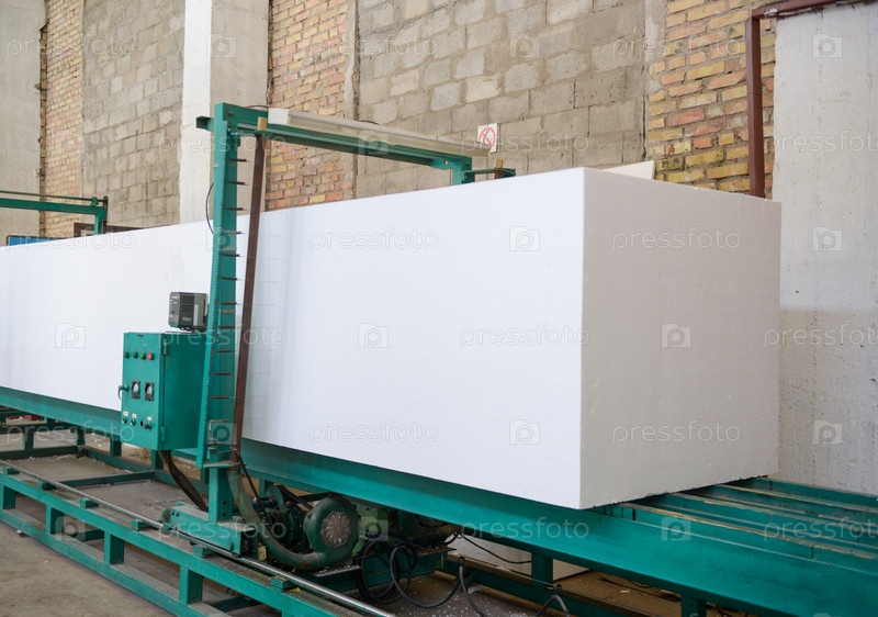 Станок режет пенопласт. Завод по производству сэндвич-панелей из пенополистирола