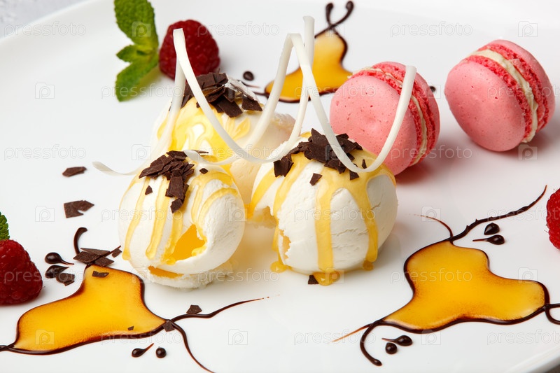 Розовые миндальные печенья с ванильным мороженым и медом
