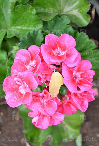Цветки пеларгонии (лат. pelargonium) или герана (лат. geranium) бледно-розовые после дождя